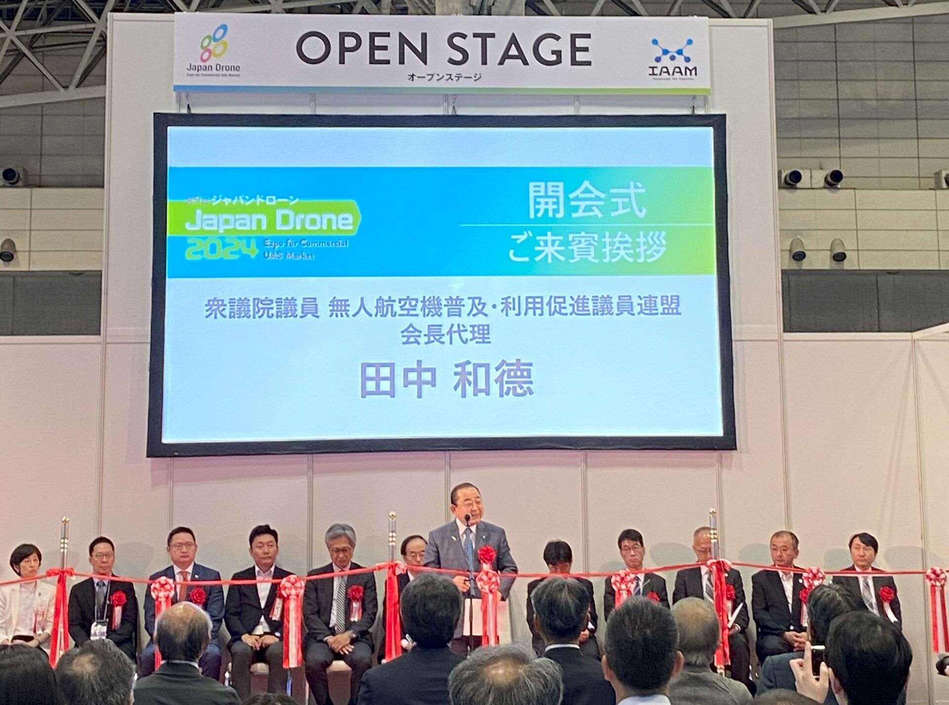 ■6月5日(水)初日、開会式ではご来賓の衆議院議員 無人航空機普及・利用促進議員連盟会長代理の田中和徳様をはじめ、関係省庁の皆様よりご挨拶を賜りました。