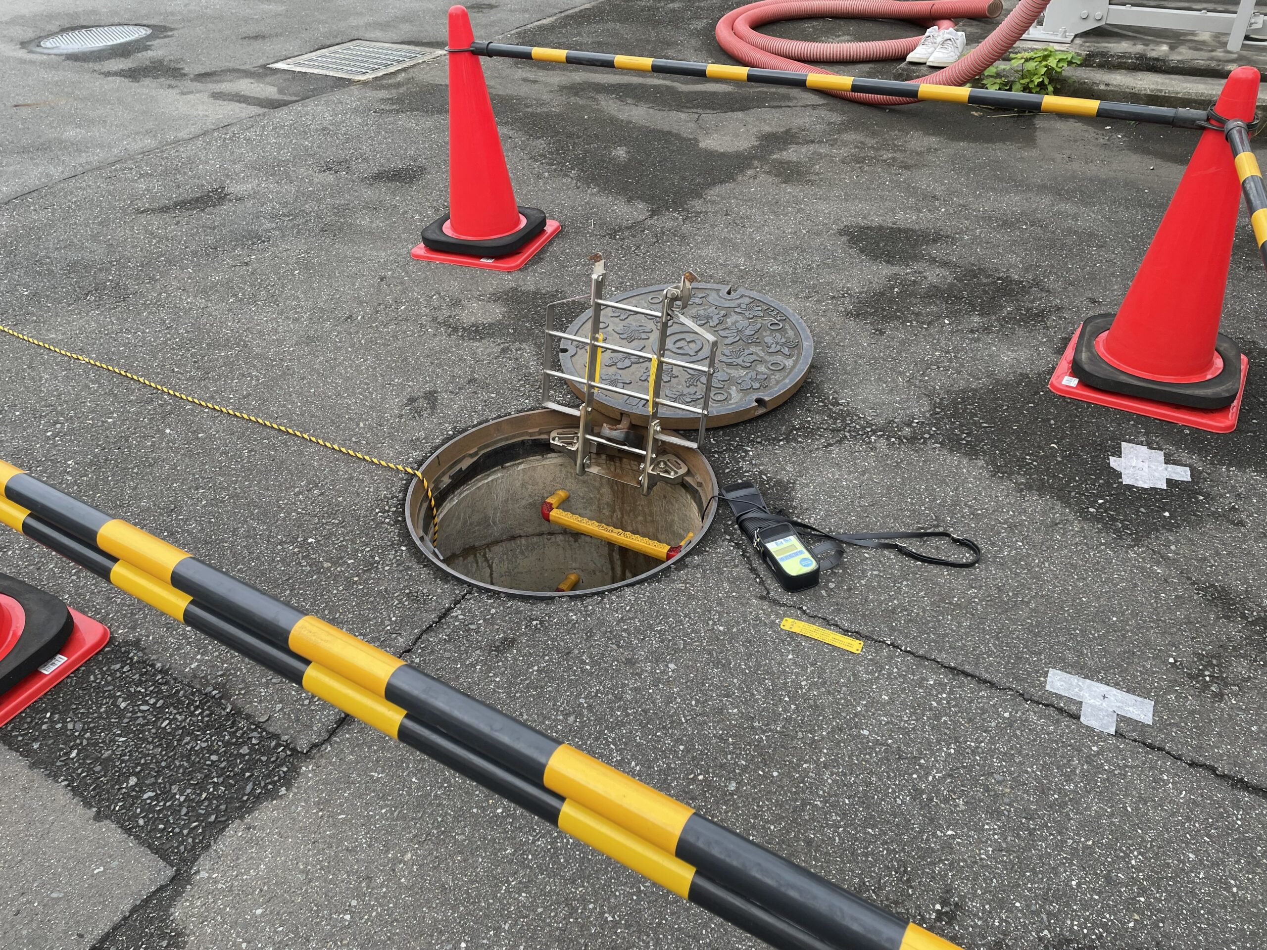下水管路の模擬施設を備えた日本下水道管路管理業協会の管路研修センターで実施