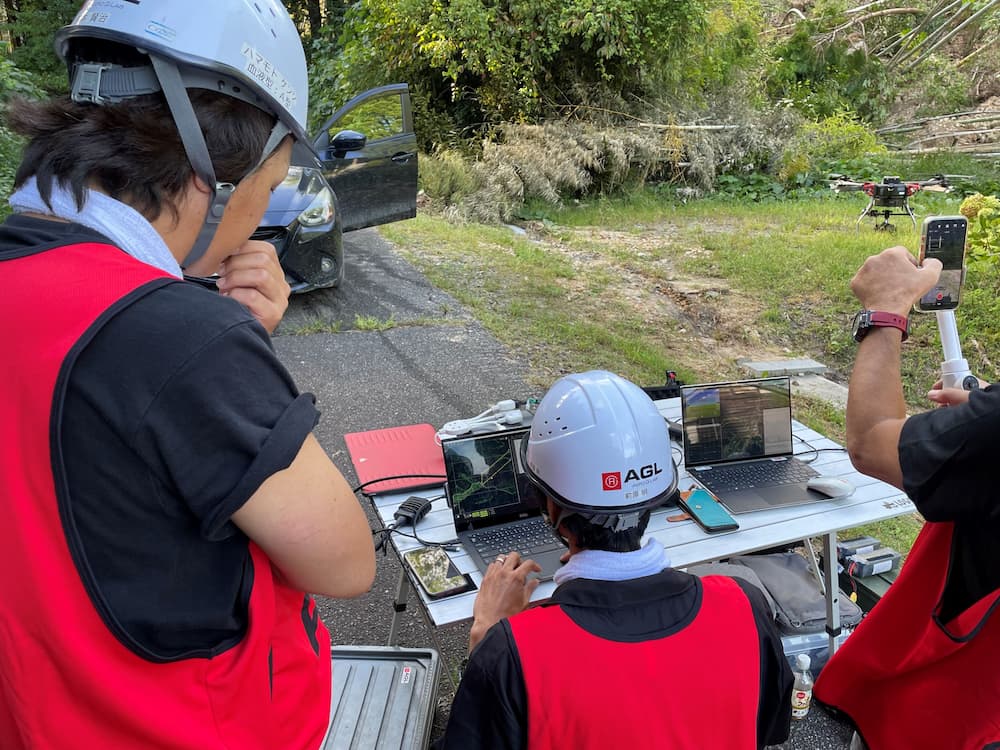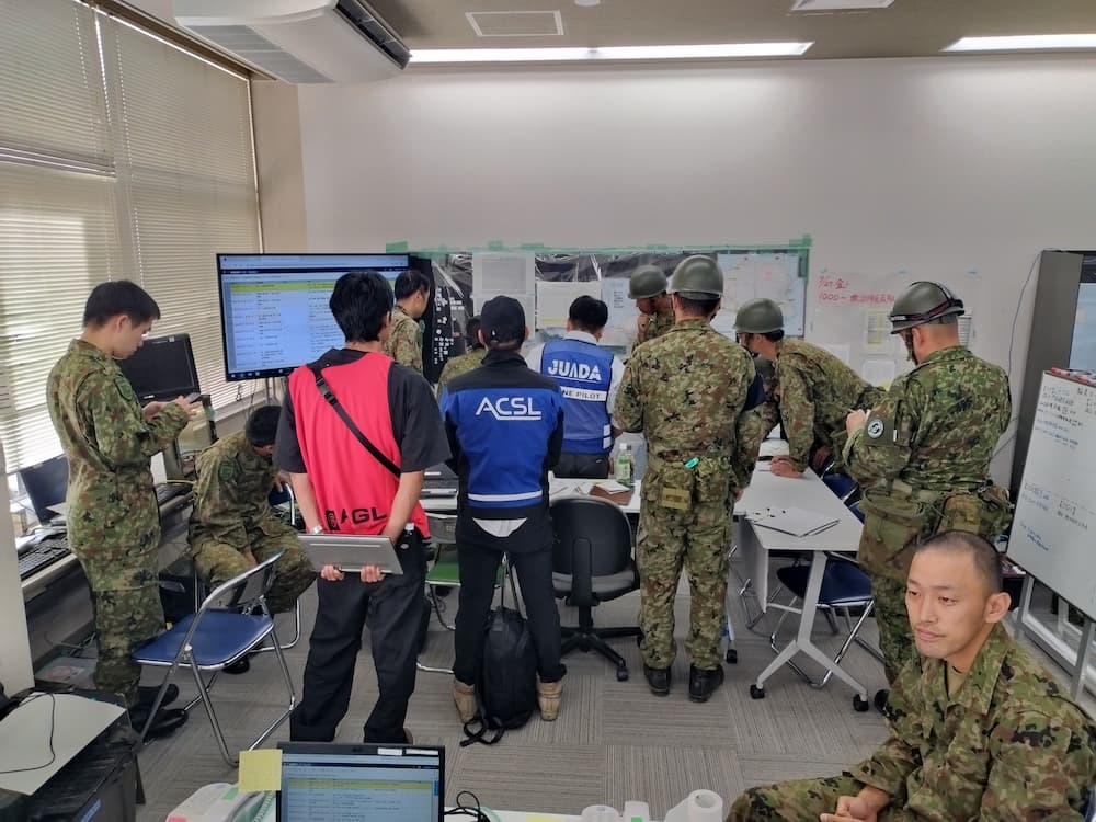 - 左からエアロ-ジーラボ、ACSL、JUIDAの調整員(輪島市:陸自第14普通科連隊指揮所)